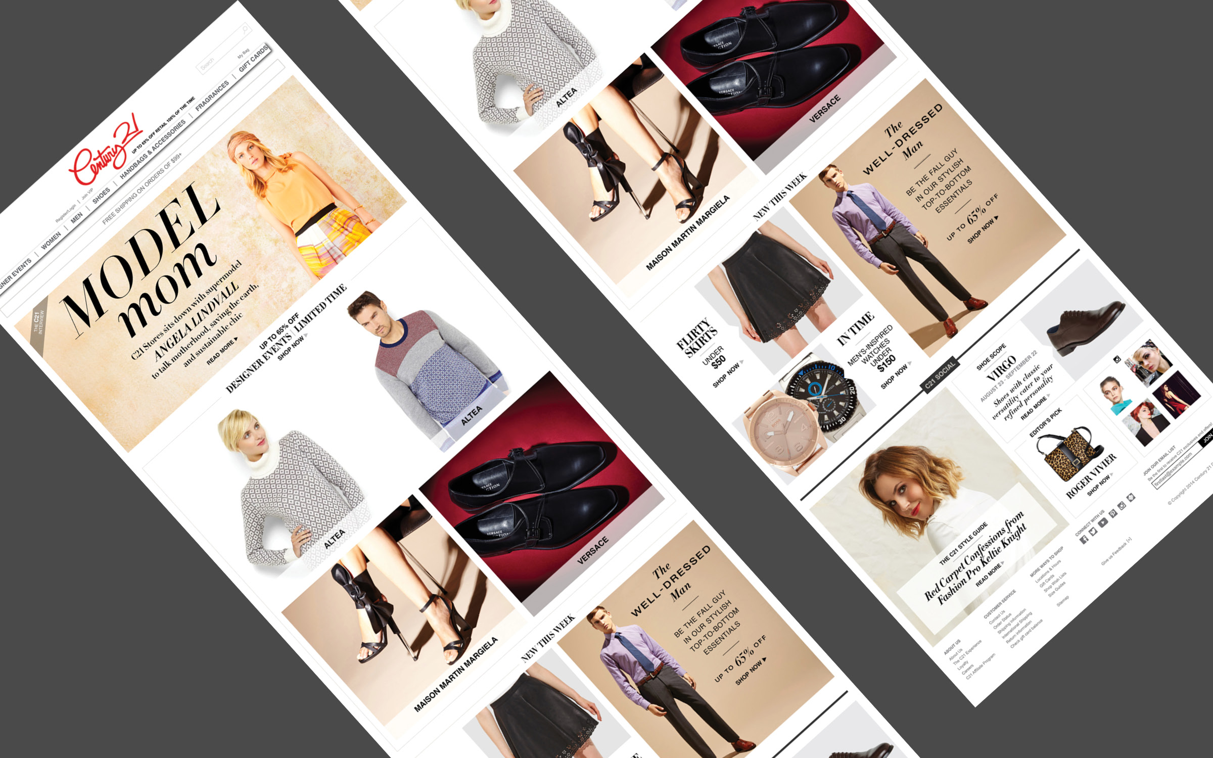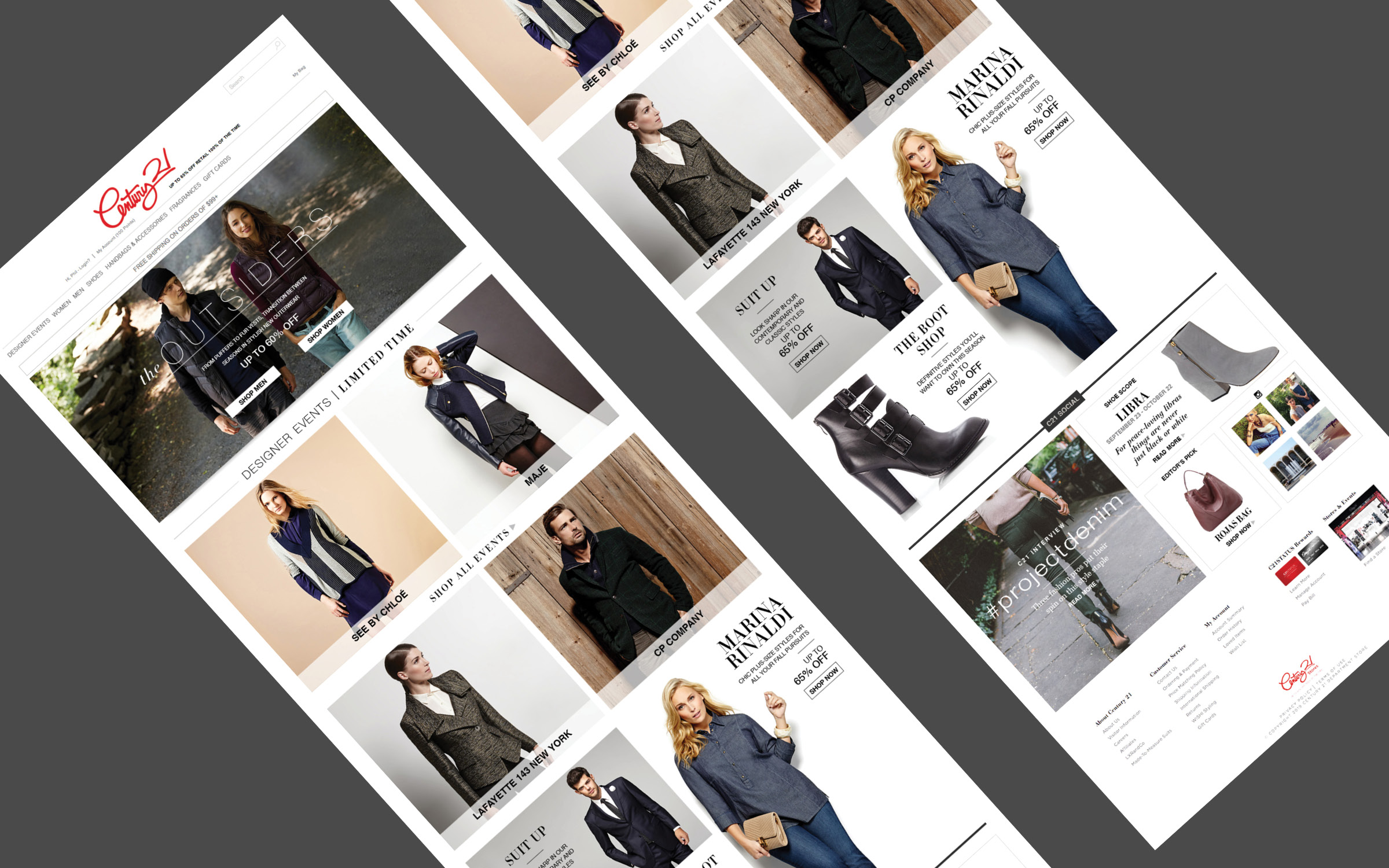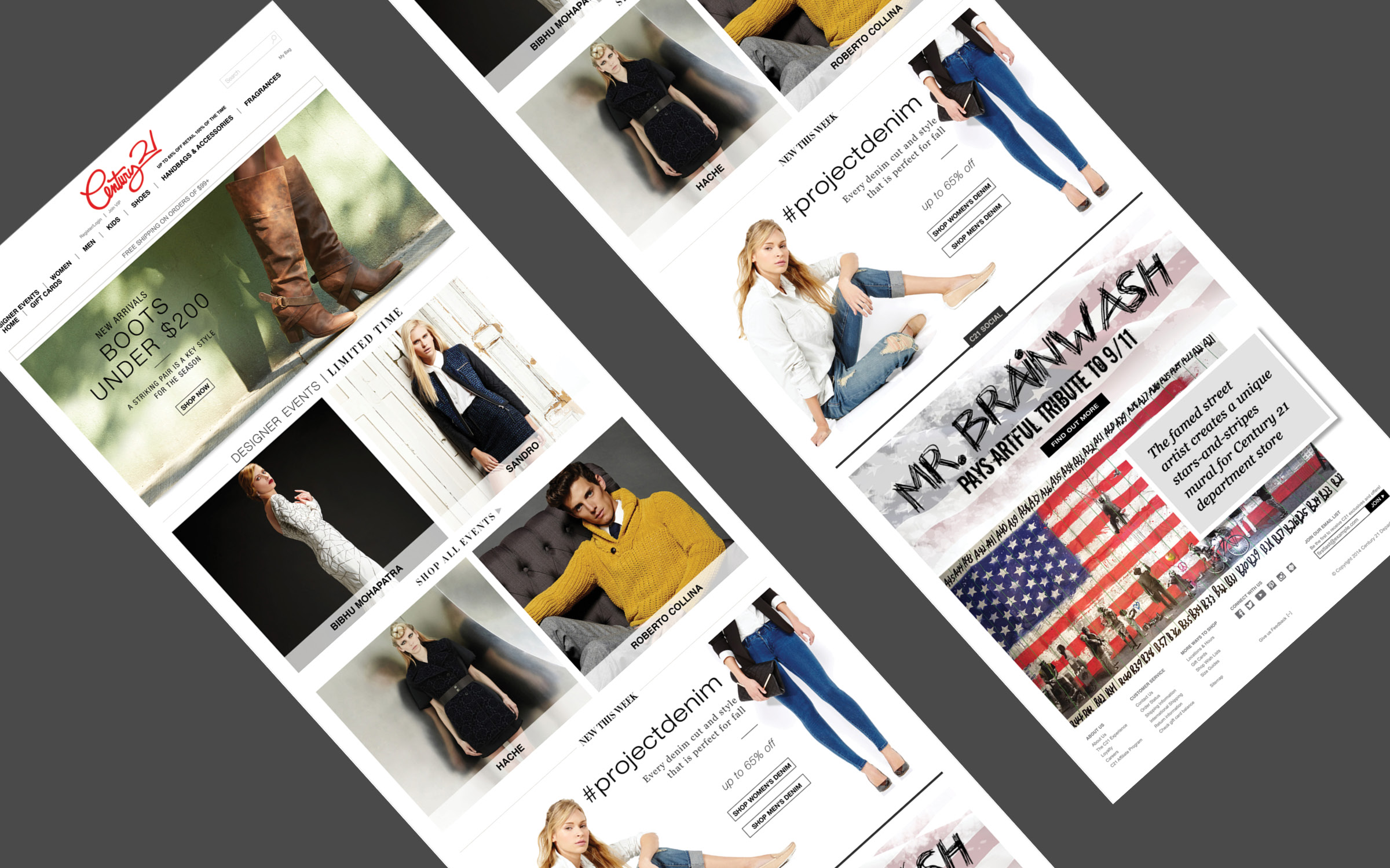 One of my first roles after graduation was serving as an Art Director for Century 21 Department Stores in New York City. I worked across a wide range of digital initiatives for the luxury e-commerce brand, from email campaigns to influencer-driven affiliate blogs. At the time, C21’s website relied on a carousel-style layout that was difficult to use on mobile devices. As mobile shopping began to surge, I helped design an early responsive solution—well before responsive technology became standard—making their homepage and product pages seamless and accessible for all users.