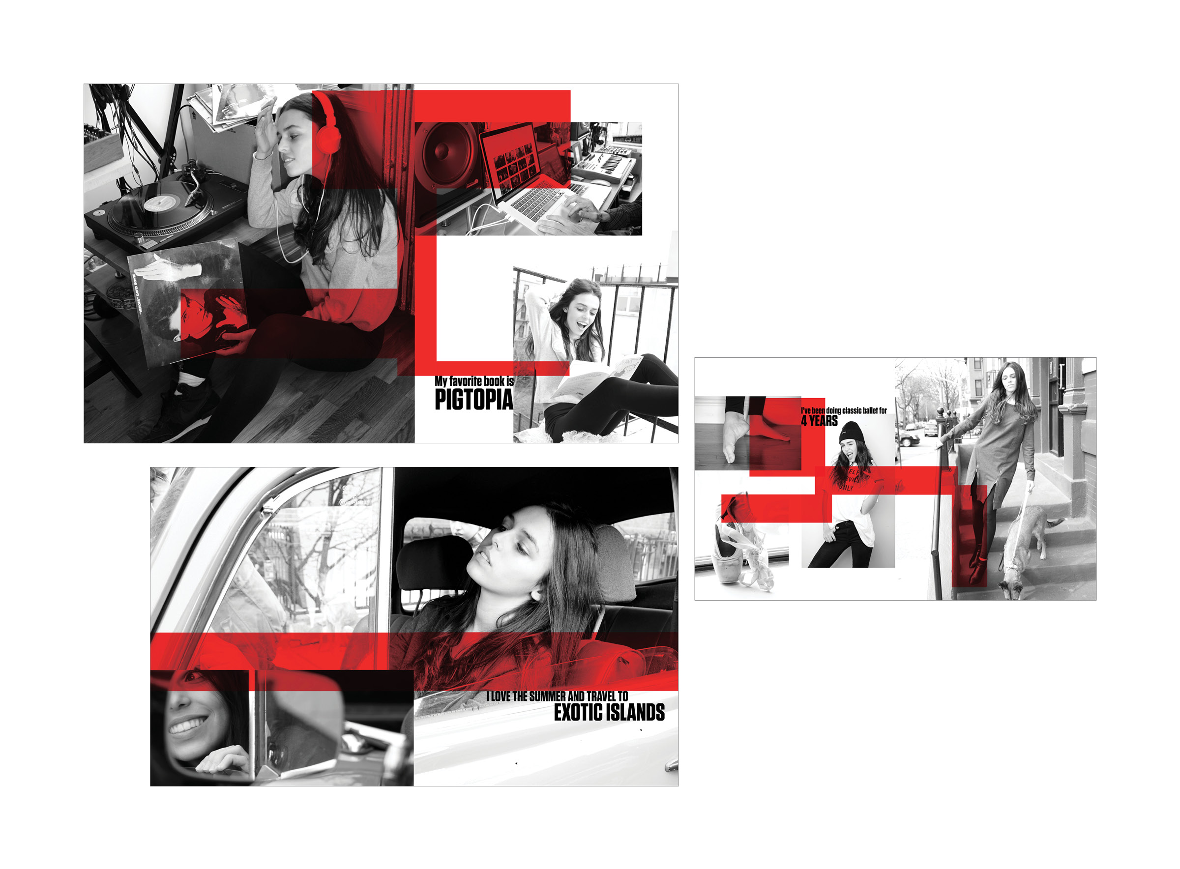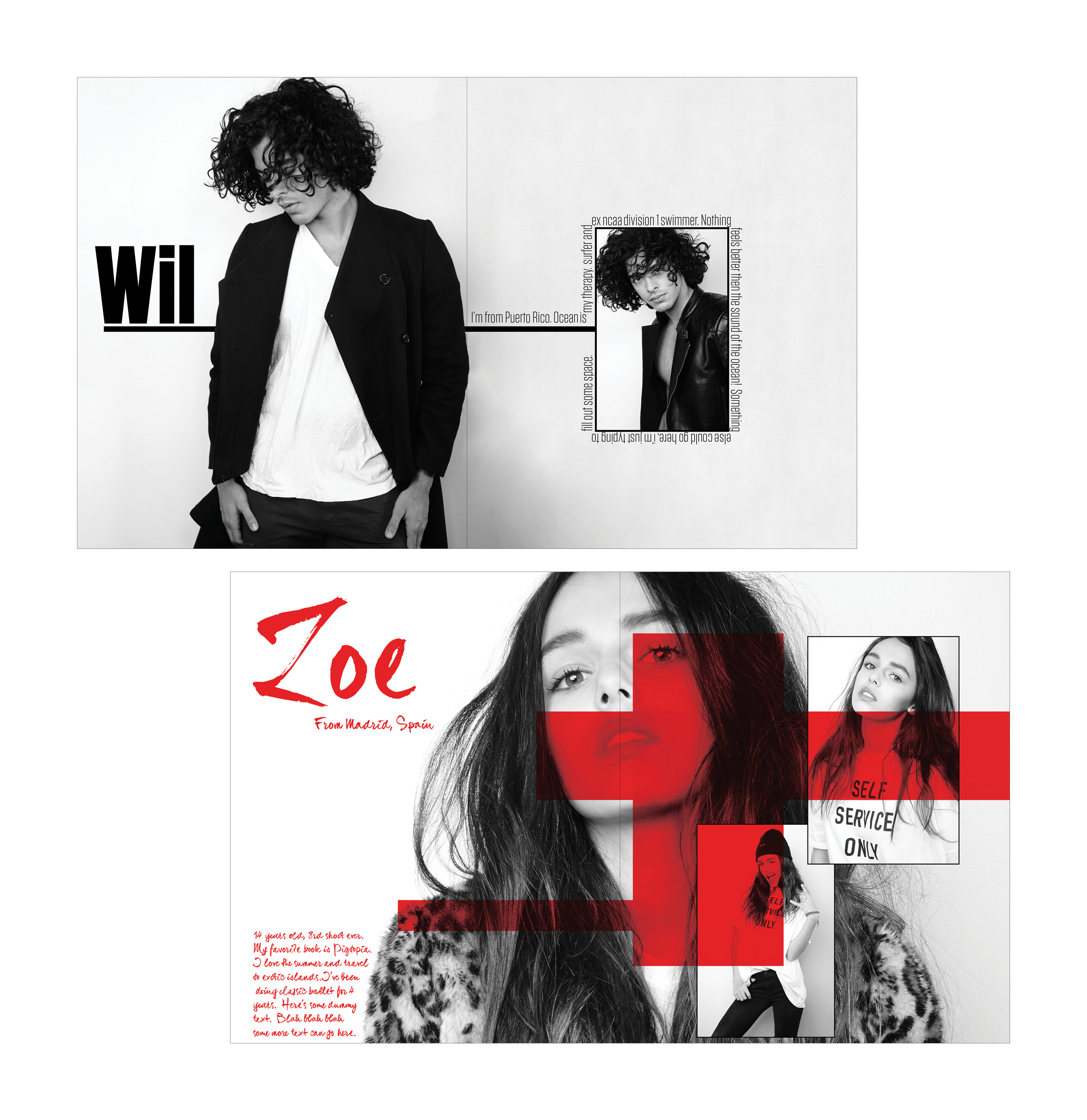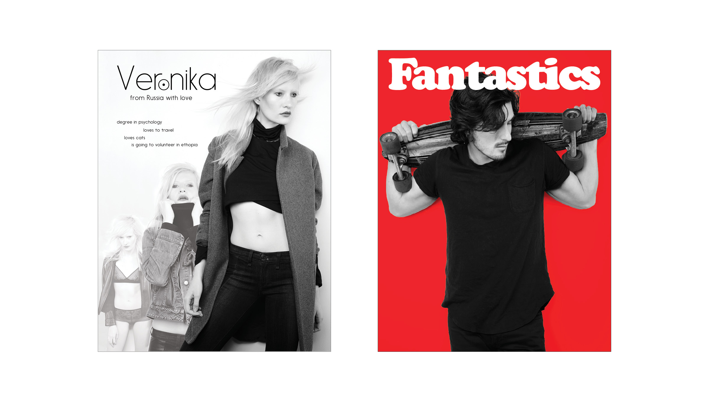 This pitch for Fantastics magazine highlighted the photography of Wendy Hope, with the goal of elevating models beyond stereotypes and presenting them as multidimensional individuals. By pairing candid portraits with pull quotes and imagery of the models immersed in their personal environments—surrounded by their passions, hobbies, and the things they love—the concept brought a sense of authenticity and humanity to the feature. I’m proud to share that the project was a success.