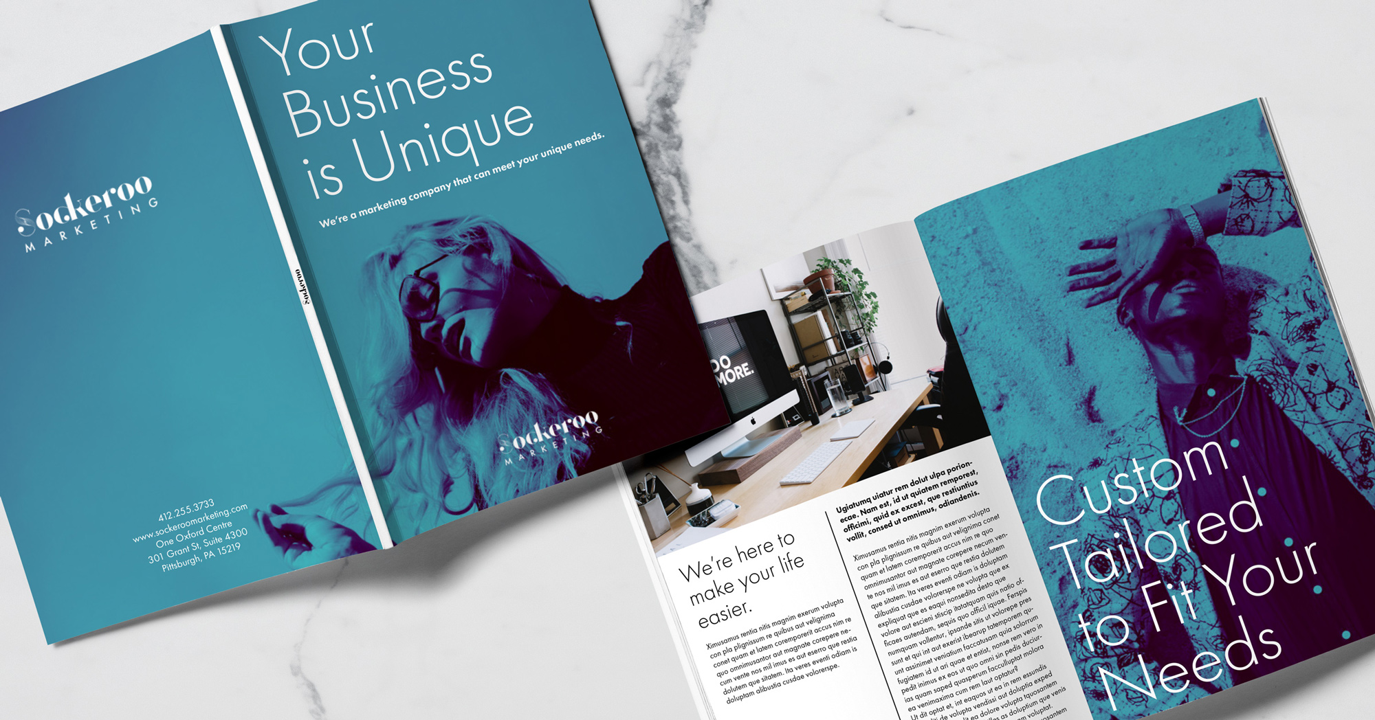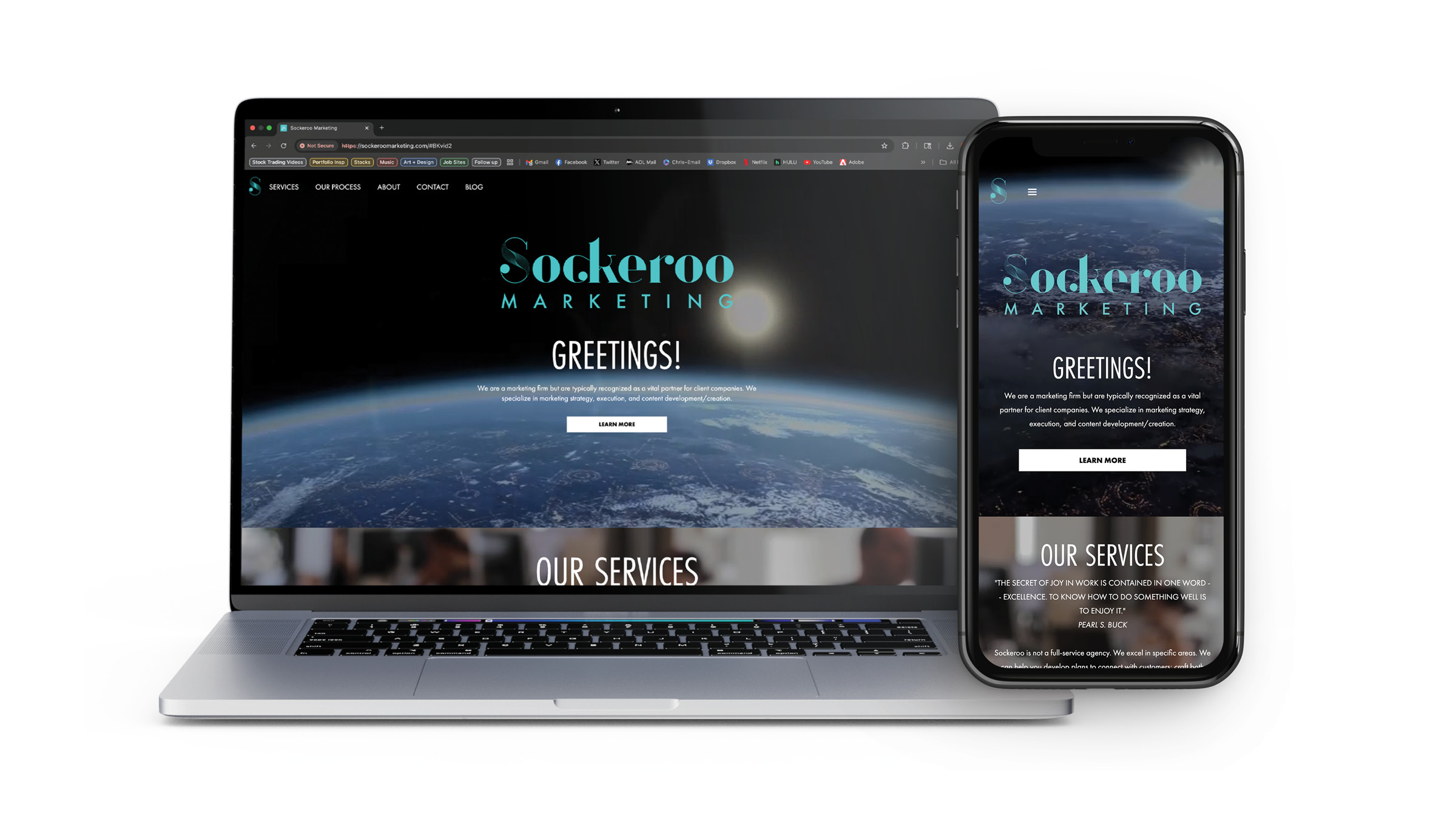 Sockeroo Marketing was created as a strategy-driven agency specializing in marketing execution, content development, and brand storytelling. The name “Sockeroo”—a 1940s slang term meaning a smash hit—inspired a brand identity with a subtle Art Deco influence that feels both timeless and approachable. To achieve this, I selected Argo as the primary typeface, originally designed as an Art Deco display font but with modern refinements, and paired it with Futura as a clean, versatile supporting font. Together, they established a bold yet sophisticated brand voice.